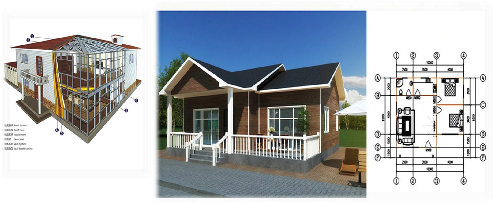 Light steel structure villa seismic performance is far better than the traditional concrete and brick house. Beautiful in appearance, energy saving and environmental protection, quick to build, light weight, high space utilization, heat insulated, fire-proof resistance and warm. Stable and can resist least 8 grade earthquake and 60m/s hurricane. Easy construction and very beautiful appearance based on different designs, it becomes an ideal eco-building construction pursued by the customer.